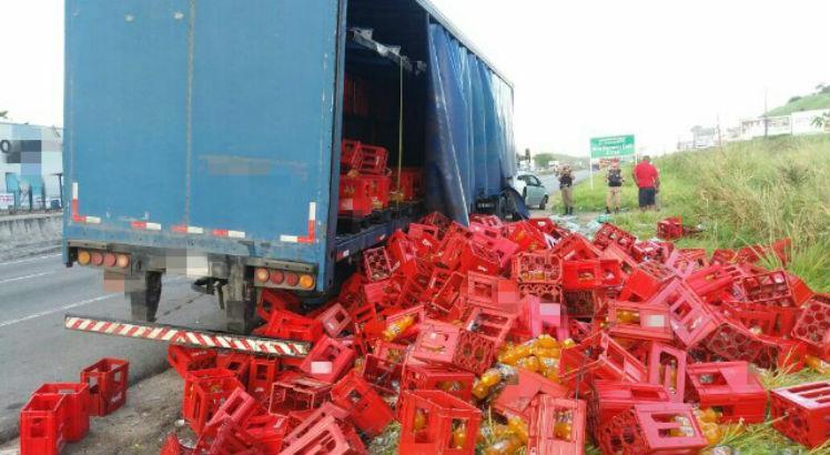 O motorista tentou amenizar os danos e seguiu pelo acostamento da pista, no sentido Recife-interior, mas parte da carga foi