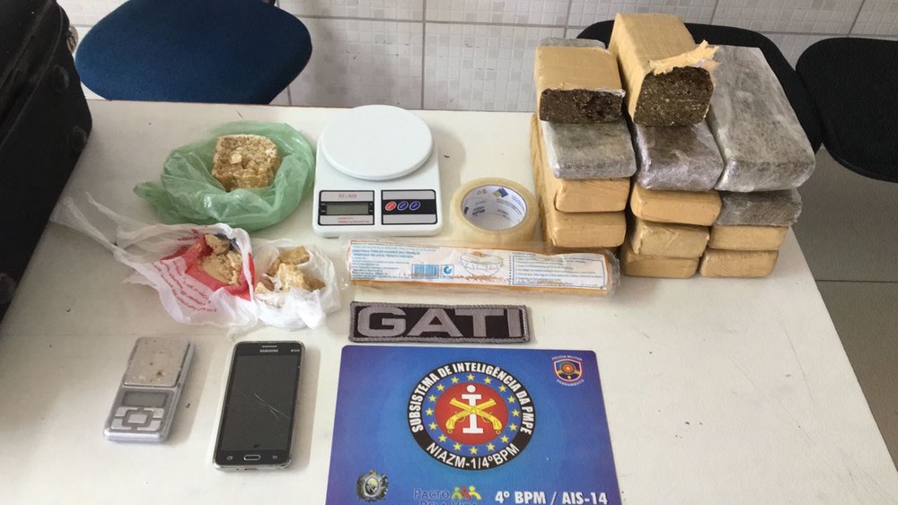 No automóvel, foram encontrados 9kg de maconha prensada, 400g de crack e uma balança de precisão. Os suspeitos foram presos e serão encaminhados para uma audiência de custódia.