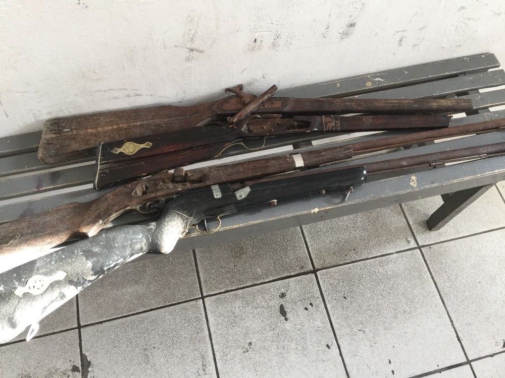 A mulher procurou a polícia, fez a denúncia e informou que o homem estaria com as armas. No endereço do suspeito, a PM encontrou quatro espingardas. Ainda de acordo com a polícia, um inquérito será instaurado para investigar a violência doméstica.