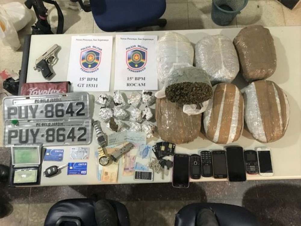 Ainda segundo a polícia, na casa do suspeito foi achado tabletes da droga, uma pistola, vários aparelhos celulares e cartões de crédito.