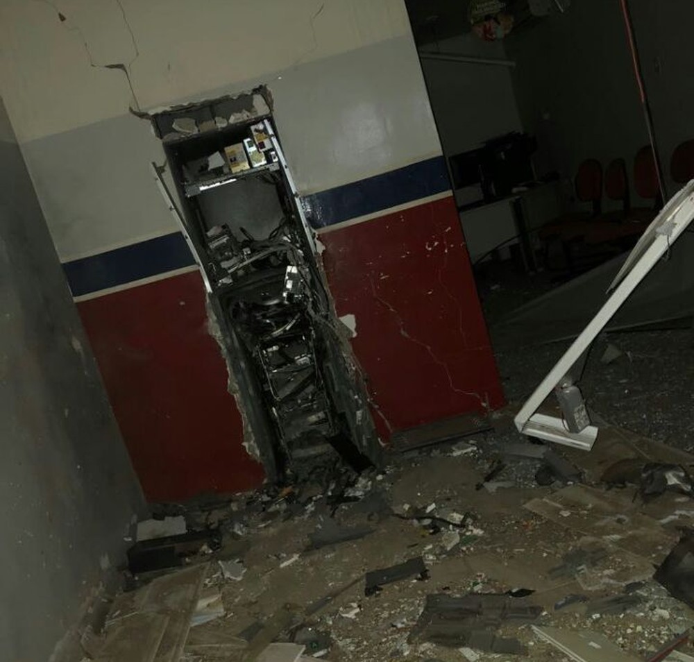 O estabelecimento foi destruído pelos explosivos, conforme informou a polícia. O grupo conseguiu levar o dinheiro dos caixas eletrônicos, mas a quantia exata não foi informada.