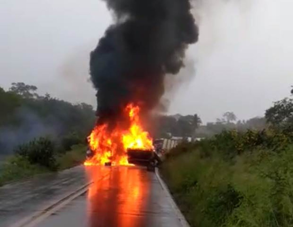 De acordo com o Corpo de Bombeiros, três pessoas morreram carbonizadas, já que os veículos pegaram fogo. Equipes foram até o local para conter as chamas.
