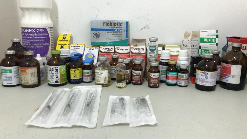 Ainda de acordo com a polícia, no local foram apreendidos medicamentos de uso proscrito, todos sem receita, incluindo anestésicos e anabolizantes com venda controlada. Cinco cobras também foram apreendidas na casa e encaminhadas ao Companhia Independente de Policiamento do Meio Ambiente (Cipoma).
