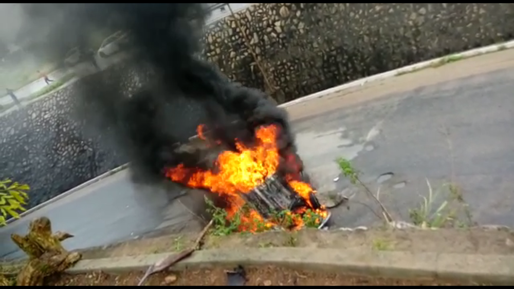 Casal sobrevive após carro pegar fogo ao cair de altura de 10 metros em Garanhuns