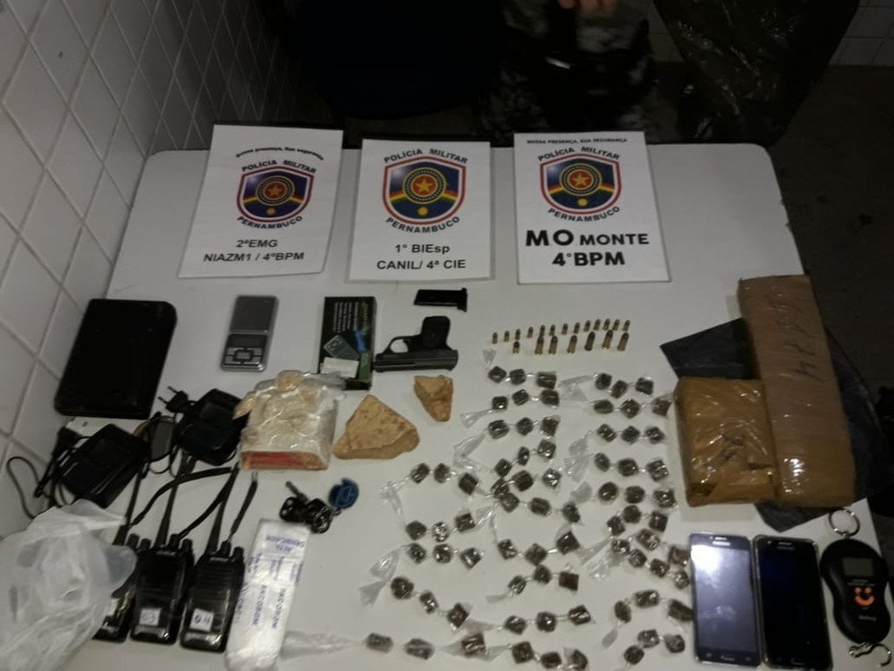 Um casal foi detido por tráfico de drogas no sábado (30) no bairro José Liberato em Caruaru, no Agreste de Pernambuco. Segundo o Batalhão Integrado Especializado de Policiamento (Biesp), os policiais encontraram dentro da residência 770 gramas de crack, 1.3 kg de maconha, uma pistola, 20 munições, dois celulares e carregadores, embalagens para droga, porções prontas de maconha e uma lâmina.