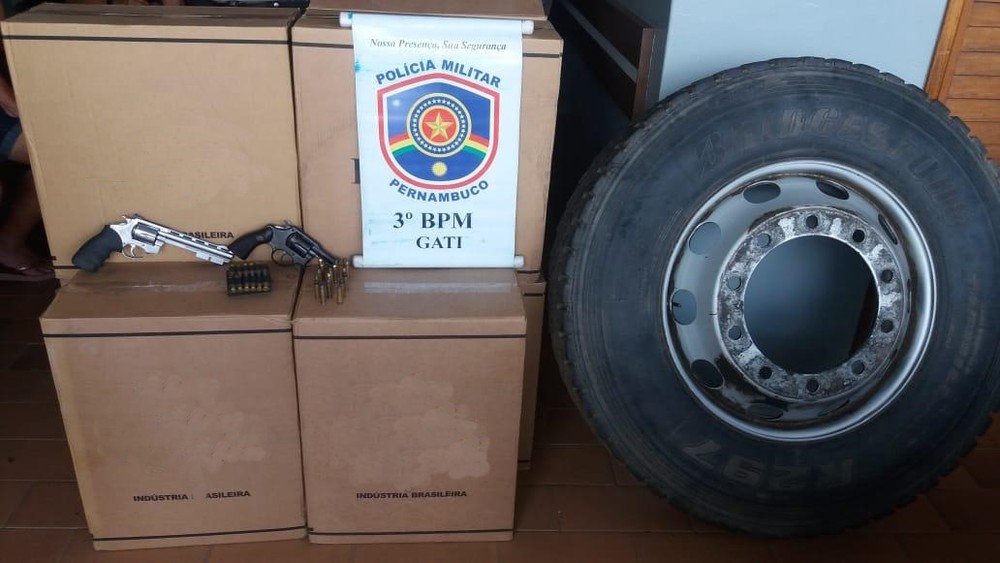 Conforme as Polícias Militar e Civil, na residência foram apreendidas um pneu de caminhão, nove caixas de cigarro e duas armas de fogo. A Polícia Civil informou que a carga total era de 765 caixas de cigarro e estava avaliada em cerca de R$982.425 mil.