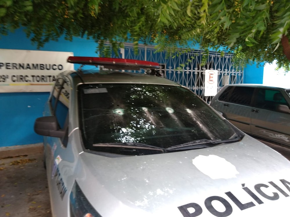 Na madrugada desta segunda-feira (7) um criminoso danificou o prédio da Delegacia de Polícia Civil, uma viatura e dois carros em Toritama, no Agreste de Pernambuco. Segundo a Polícia Civil, no momento do crime, a delegacia estava com um agente policial no plantão. Correção: Na primeira nota, enviada pela Polícia Civil por volta das 11h (horário local), foi informado que o criminoso utilizou uma metralhadora para cometer o crime. No entanto, em nova nota divulgada às 16h (horário local), a polícia destacou que o bandido utilizou um objeto de ferro. A informação foi corrigida às 16h26 (horário local). Por meio de nota, a Polícia Civil informou que "imagens de câmeras próximas ao local mostram o suspeito se aproximando, com um objeto de ferro nas mãos, e danificando os três carros (um deles apreendido, uma viatura da e o veículo particular de um dos policiais)". Peritos do Instituto de Criminalística (IC) estiveram no local e confirmaram que as marcas não foram causadas por arma de fogo. A polícia trabalha na identificação do suspeito, que deve responder pelo crime de dano ao patrimônio.