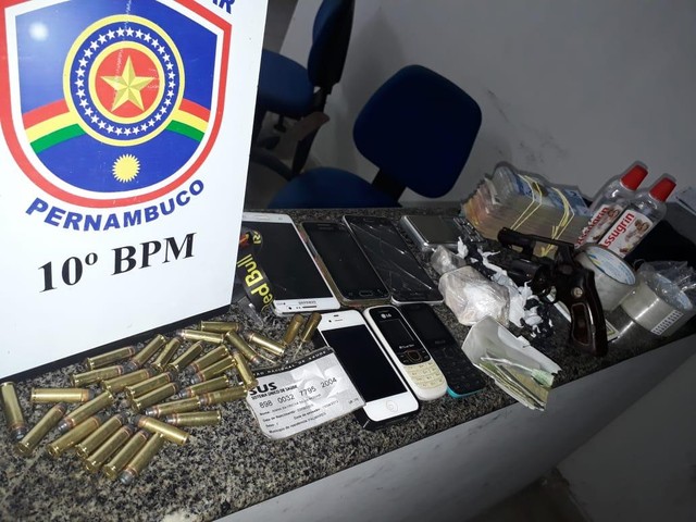 Um adolescente de 16 anos e uma mulher de 36 anos foram detidos neste sábado (9) em Palmares, na Zona da Mata Sul de Pernambuco. Segundo a Polícia Militar, eles estavam numa casa onde ocorria tráfico de drogas, na Rua Arlindo Nado, no bairro Projetada 1. Ainda de acordo com a PM, foi realizada a abordagem no local e durante o trabalho da polícia foram apreendidos um revólver, uma balança de precisão, 124 gramas de crack, 27 big bigs de maconha, R$ 5.383 em cédulas, seis celulares, uma touca ninja e uma moto. O adolescente deve responder a um Boletim de Ocorrência por tráfico de drogas. A mulher detida deve responder por tráfico, associação para o tráfico, corrupção de menores e posse de arma de fogo.