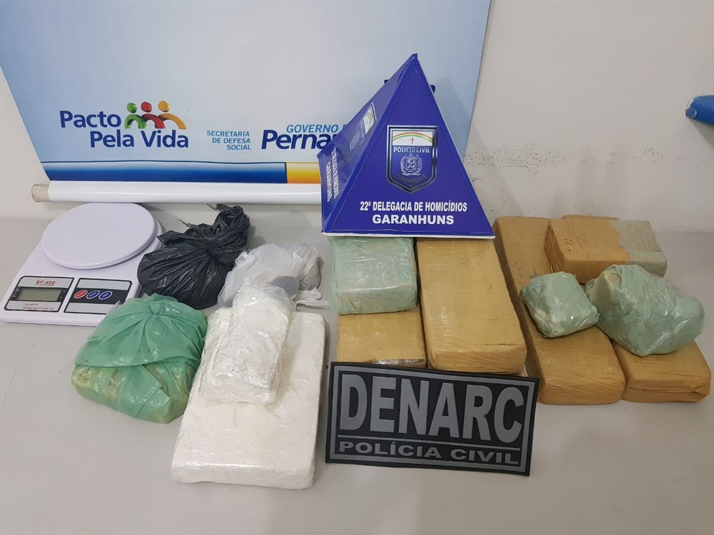 Três pessoas foram presas suspeitas de tráfico de drogas na quarta-feira (10) em Arcoverde, no Sertão de Pernambuco. De acordo com a Polícia Civil, com eles foram encontrados 1,5 kg de cocaína, 1,1 kg de crack e 6,5 kg de maconha. Ainda segundo a polícia, uma mulher saiu de Garanhuns com destino a Arcoverde. Ela iria comprar drogas para revender. Ao ser abordada junto a um casal, a polícia encontrou com a mulher 100 g de cocaína, 300 g de crack e 2 kg de maconha. Os policiais também realizaram uma revista na residência do casal, onde foram encontradas 840 g de crack, 1,3 kg de cocaína e 4,6 kg de maconha. O trio foi autuado por tráfico de drogas e associação para o tráfico.