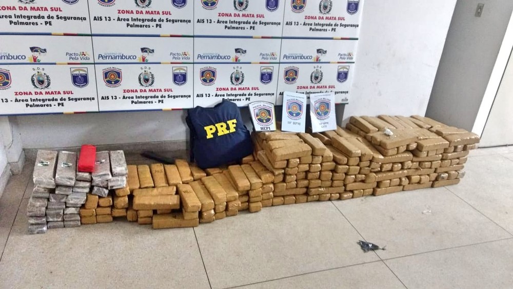 Cinco homens foram detidos com cerca de 280 kg de maconha e 200 gramas de cocaína na madrugada desta quarta-feira (21), na BR-101, em Água Preta, na Mata Sul de Pernambuco. O flagrante foi realizado em uma ação integrada da Polícia Rodoviária Federal (PRF) e da Polícia Militar. De acordo com a PRF, a droga estava sendo transportada dentro de um táxi, que era acompanhado por outros dois carros. Os outros veículos davam cobertura ao transporte do entorpecente, conforme informou a polícia. O grupo foi detido e encaminhado à Delegacia de Polícia Civil de Palmares, que irá investigar o caso.