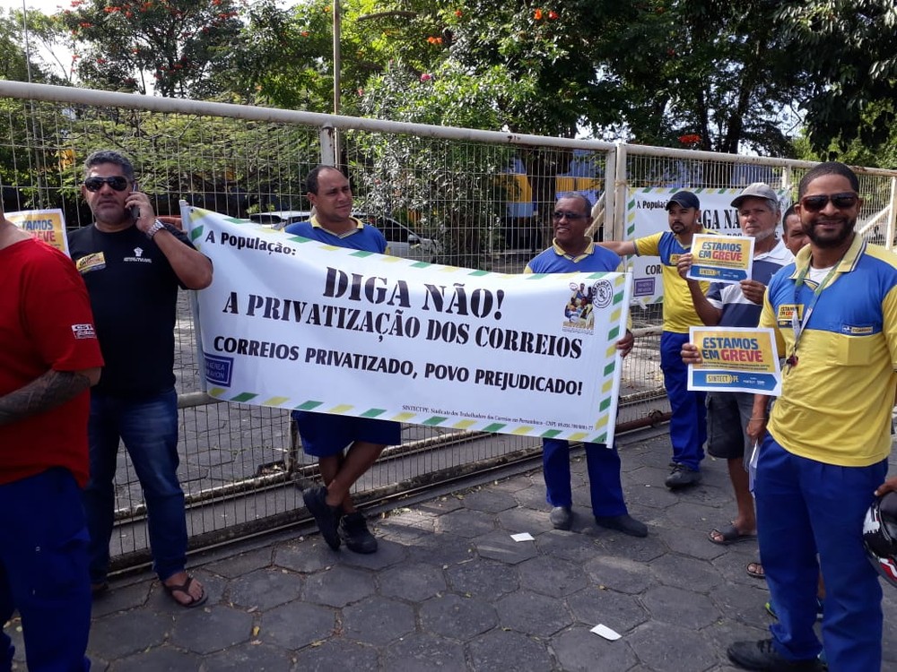 Funcionários do Sindicato dos Trabalhadores da Empresa de Correios e Telégrafos em Pernambuco (Sintect-PE) aderiram à greve nacional dos Correios na noite da terça-feira (10). A paralisação, segundo o Sindicato, é por tempo indeterminado e afeta os centros de distribuição, como o de San Martin, na Zona Oeste do Recife, nesta quarta (11). No local, alguns dos funcionários carregam faixas e cartazes com as frases "não à privatização dos Correios" e "Correios privatizado, povo prejudicado". A privatização da estatal foi incluída, em agosto, no programa de privatizações do governo do presidente Jair Bolsonaro (PSL). O portão de acesso ao centro de distribuição em San Martin, onde é possível buscar encomendas, estava fechado e, segundo os trabalhadores, o serviço não funciona nesta quarta. Ao G1, os Correios informaram que a paralisação não deve afetar o trabalho da empresa e todas as agências devem abrir a partir das 9h desta quarta (11). Um balanço da adesão dos trabalhadores deve ser divulgado pela empresa até o final da manhã.