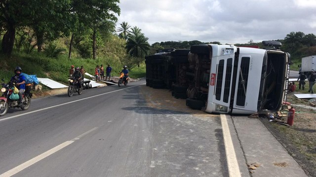 O motorista de uma carreta ficou ferido após perder o controle da direção e o veículo tombar na BR-101, na Vila dos Milagres, no Ibura, na Zona Sul do Recife, nesta sexta-feira (11). De acordo com a Polícia Rodoviária Federal (PRF), o veículo interditou as duas faixas principais no sentido Cabo de Santo Agostinho (veja vídeo acima). Com as duas faixas principais bloqueadas, o trânsito foi desviado pelo acostamento, o que gerou um engarrafamento na rodovia. O caminhão levava uma carga de chapas de madeira compensada. Parte dela se desprendeu no momento do tombamento, atingindo um carro que havia saído da pista e estava no canteiro central. O motorista do carro teve escoriações no braço, mas não precisou ser socorrido. De acordo com a PRF, ele realizou o teste do bafômetro e o resultado foi normal. O condutor da carreta fraturou o braço e foi socorrido pelo Corpo de Bombeiros para uma unidade de saúde não identificada, segundo a PRF. O acidente aconteceu por volta das 5h30 e, por volta das 9h, a carreta seguia tombada na rodovia, deixando o trânsito complicado.