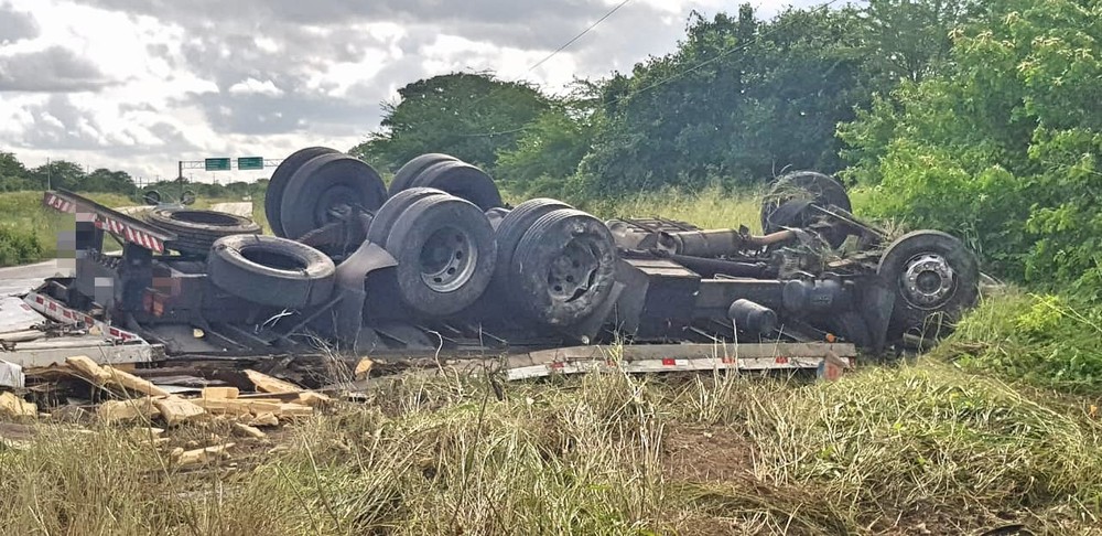 Motorista de caminhão perde controle de veículo, capota e morre na BR-232, em Bezerros