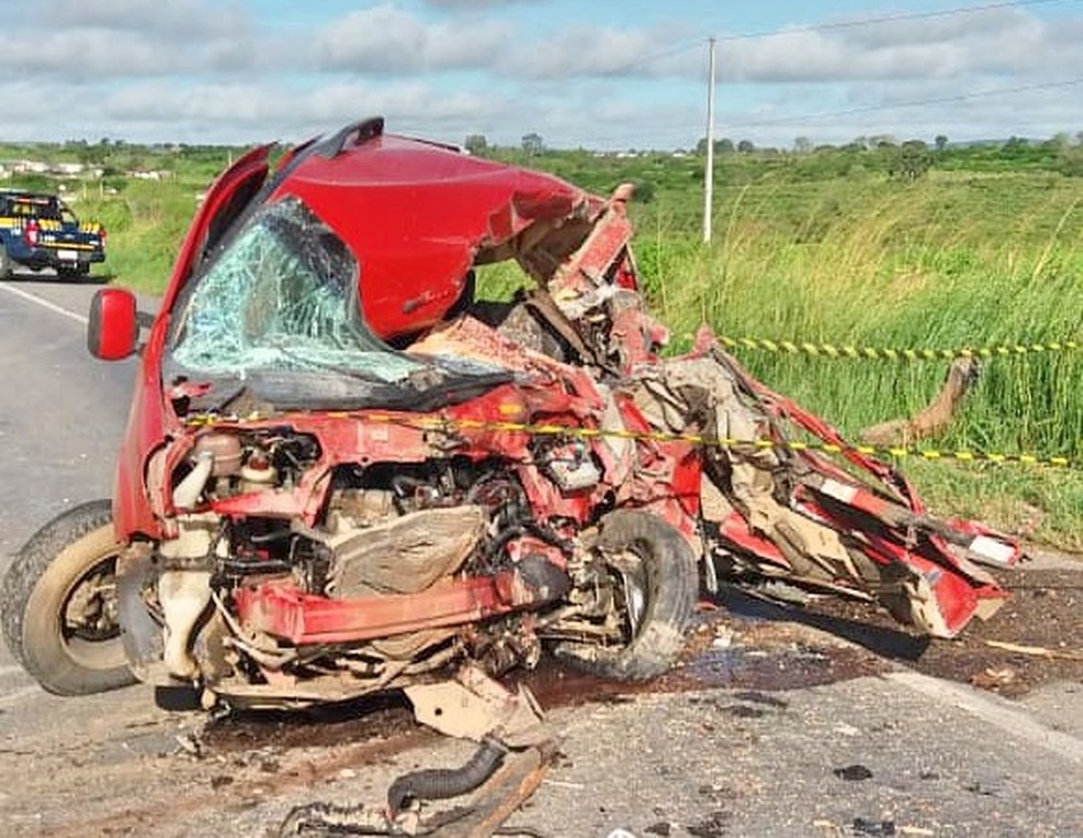 Mulher morre e homem fica ferido após carro colidir em caminhão na BR-423, em Lajedo