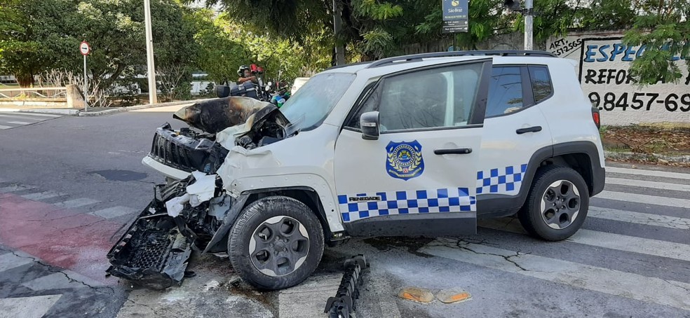 Colisão entre carro da Guarda Municipal e ônibus causa princípio de incêndio em Setúbal, no Recife
