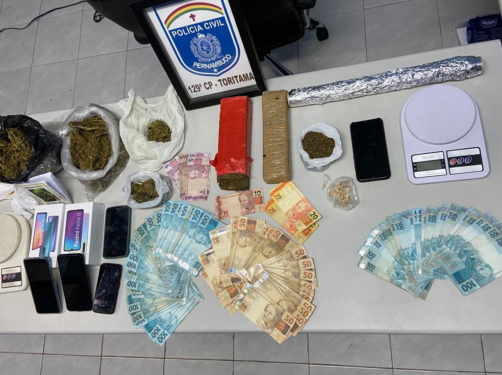 As Polícias Civil e Militar realizaram a Operação Dom Pedro nesta quinta-feira (1º) em Toritama, no Agreste de Pernambuco. Segundo a Polícia Civil, foram cumpridos oito mandados de busca e apreensão domiciliar, duas prisões em flagrante delito, um cumprimento de mandado de prisão preventiva. Durante a operação, também foram apreendidos três celulares, 55 gramas de crack, 230 gramas de maconha, uma quantia em dinheiro de R$ 7.470 mil e uma balança de precisão. A ação contou com cerca de 60 policiais.
