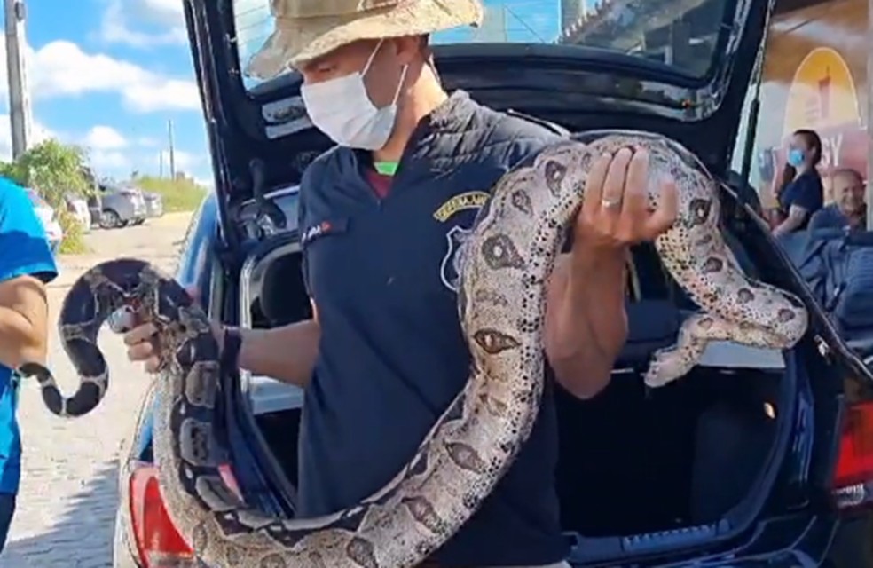 Jiboia de mais de 2 metros é resgatada no distrito de Gonçalves Ferreira, em Caruaru