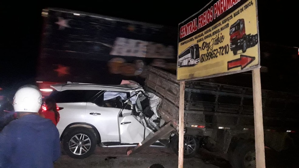 Três homens morrem após carro colidir na traseira de caminhão na BR-423, em Lajedo
