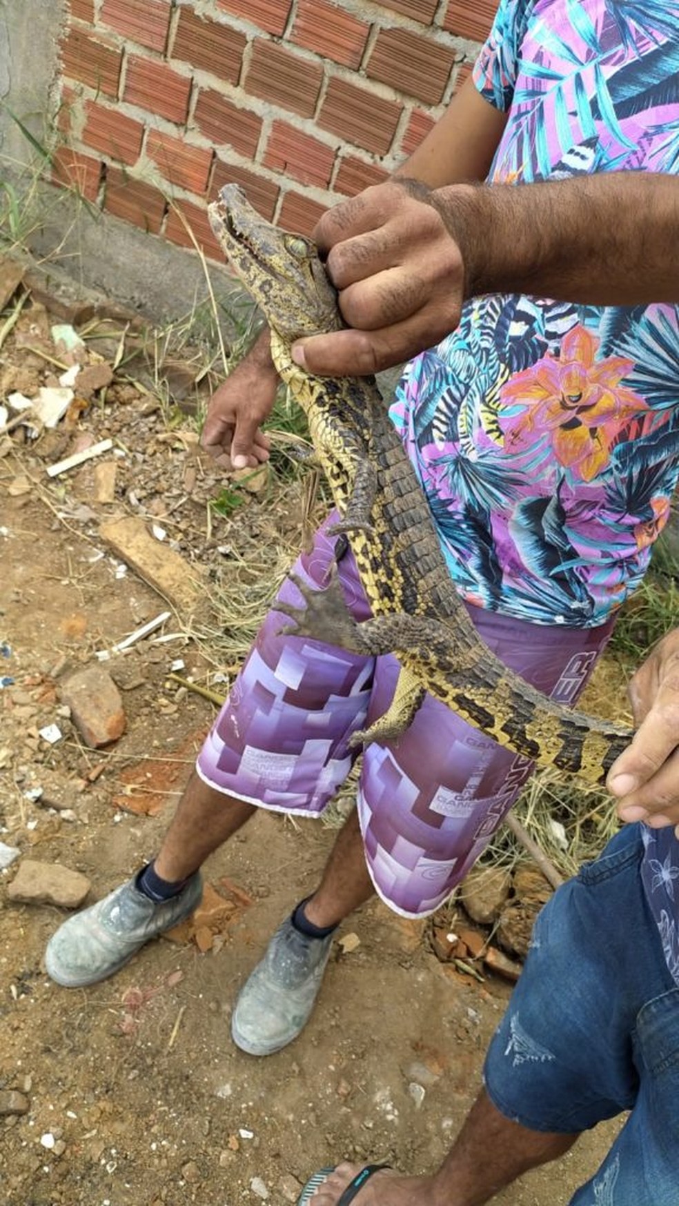 A Polícia Militar de Serra Talhada, no Sertão de Pernambuco, foi acionada para capturar um filhote de jacaré na tarde da segunda-feira (23). O animal estava dentro de uma construção na Avenida Adriano Duque de Godoy, no bairro Nossa Senhora da Penha. O jacaré foi capturado e colocado em segurança no habitat natural dele.