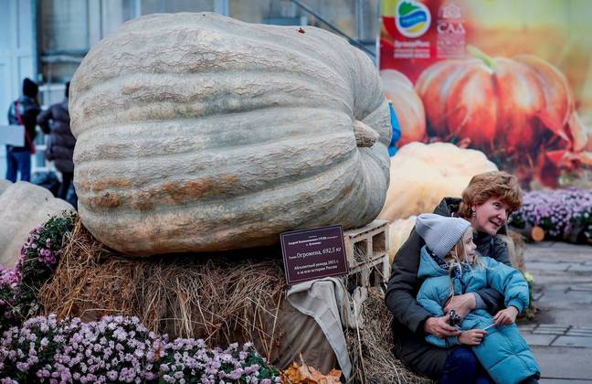 A queridinha da exibição, sem dúvidas, é a abóbora de 692,5 kg. Ela atrai a atenção de todos os visitantes do jardim botânico da Universidade Estadual de Moscou, que obviamente param ao lado dela para tirar fotos e registrar a incrível obra da natureza