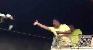 informou que as cédulas de R$ 50 e R$ 100 "foram arremessadas da varanda da