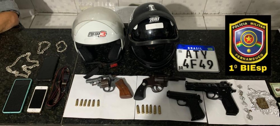 encontrados um revólver, seis munições e um aparelho com restrição de