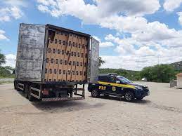 o compartimento de carga do veículo, foram encontradas centenas de caixas de