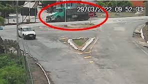 monitoramento, é possível ver um veículo cruzando a via, quando é atingido e