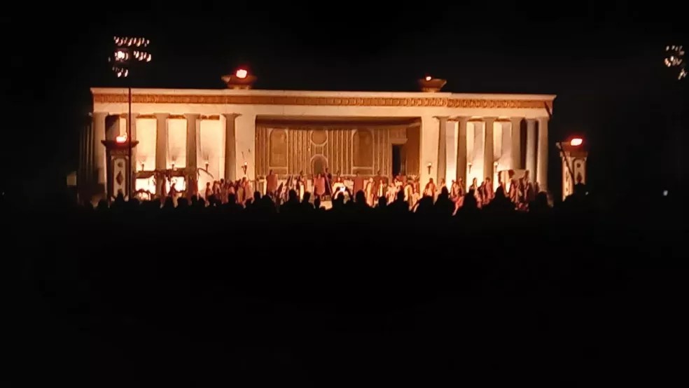 Grande público assiste à estreia do espetáculo Paixão de Cristo 2022 no Teatro de Nova Jerusalém, em PE