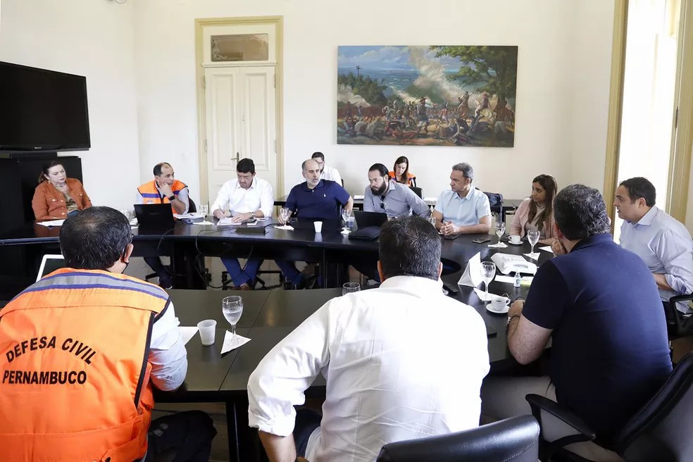 À tarde, Paulo Câmara reuniu o Gabinete de Crise, com vários secretários estaduais, para avaliar a situação após os temporais em Pernambuco. A reunião foi realizada no Palácio do Campo das Princesas, a sede do governo estadual, no Recife.
