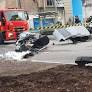 controle, colide na fachada da loja e destrói a vidraçaria. Coma força da