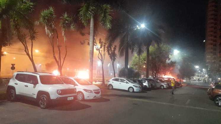 Por volta de 20h40, os manifestantes começaram a atear fogo aos carros estacionados no Setor Hoteleiro Norte. Diversos veículos foram incendiados. Hóspedes não conseguiram chegar aos hotéis na região e aguardaram em um shopping a situação se normalizar.
