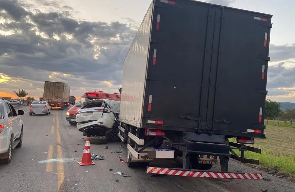 De acordo com a Polícia Rodoviária Federal (PRF), o acidente ocorreu por volta das 15h35. A colisão envolveu um caminhão baú, uma caminhonete SW4, um Onix, um Classic e um caminhão tanque.