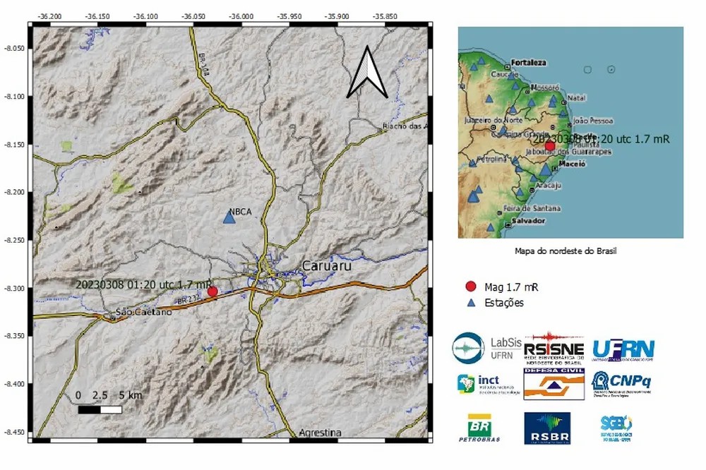 Caruaru, no Agreste de Pernambuco, registrou quatro tremores de terra em menos de 24 horas. Desde a última quarta-feira (8), as estações sismográficas operadas pelo Laboratório Sismológico (LabSis) da Universidade Federal do Rio Grande do Norte (UFRN) registraram os abalos sísmicos e um deles chegou a 1.7 de magnitude.
