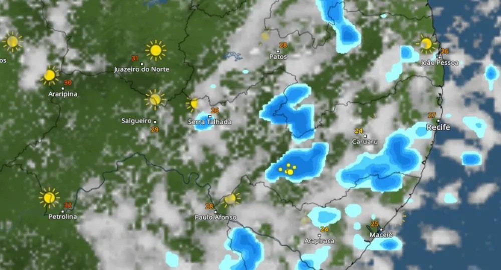 Previsão da Apac indica chuvas no interior de Pernambuco; saiba onde vai chover
