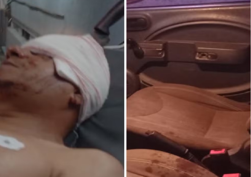 tentativa de assalto, um homem teve a cabeça perfurada por uma faca e ficou com
