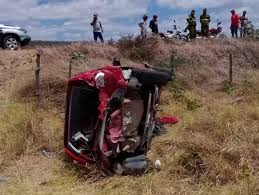 sete pessoas estavam em um veículo, que saiu da pista e capotou.