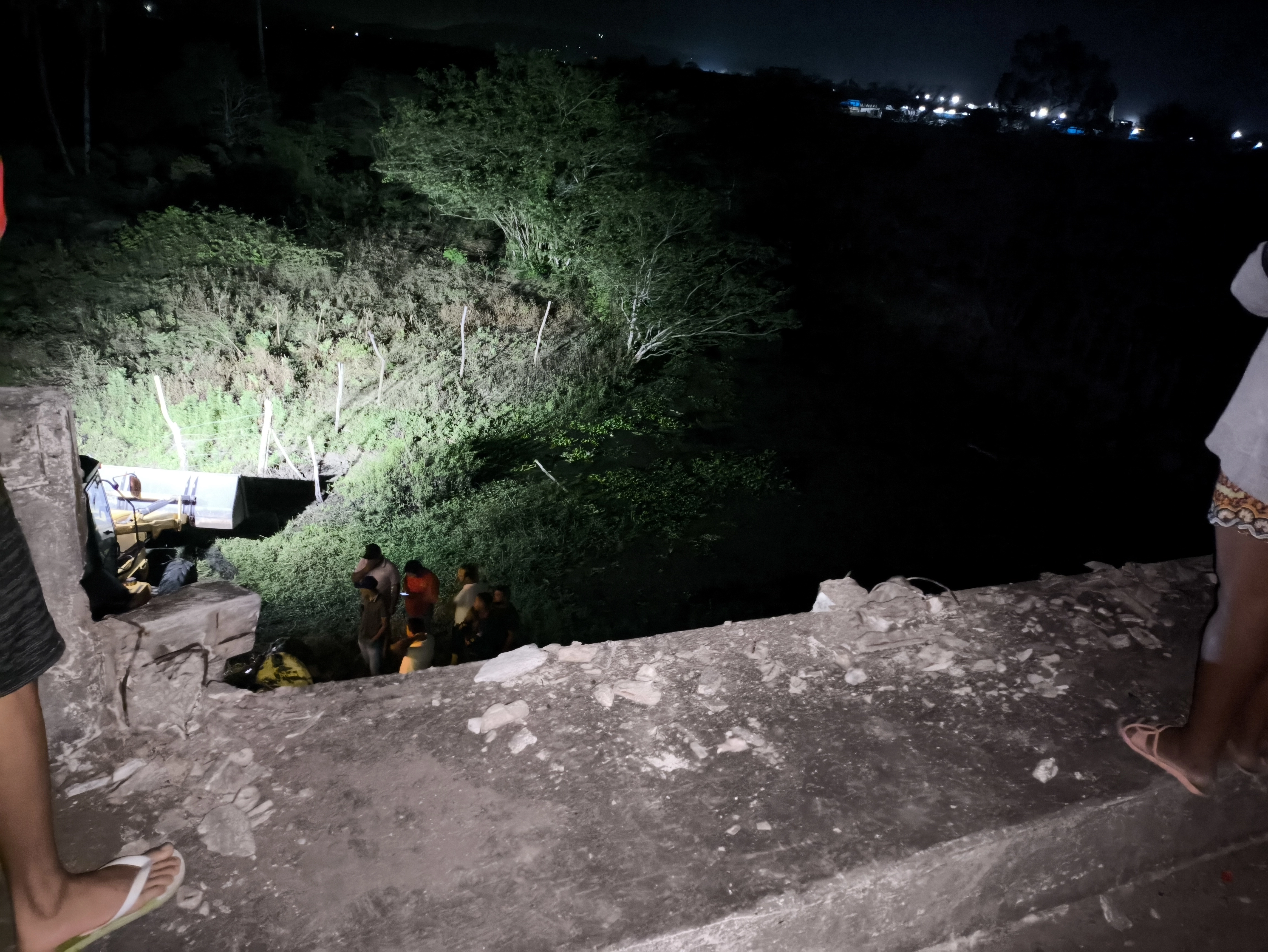 De acordo com informações, o operador da máquina retroescavadeira pulou antes da máquina cair da ponte. outras duas máquinas fizeram o resgate da retroescavadeira que tombou da ponte que tem uma altura de aproximadamente 10 metros.